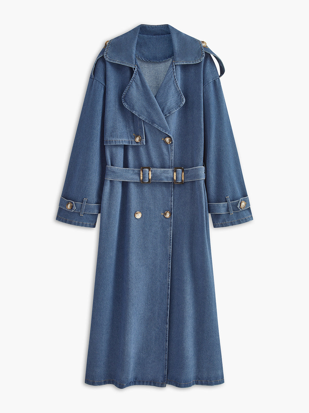 Denim Trench Coat | Doppelreihig | Gurtel Lang